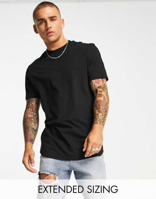 Choose an option 2XS - Chest 34 XS - Chest 36 S - Chest 38 M - Chest 40 L - Chest 42 XL - Chest 44 2XL - Chest 46-48. ASOS DESIGN Curve pocket tee with longline back in black 32. Topman Longline Fit T-shirt In Black For Men.